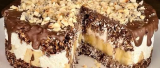 Acest tort raw, cremos, cu banane, nucă de cocos, alune și ciocolată neîndulcită este