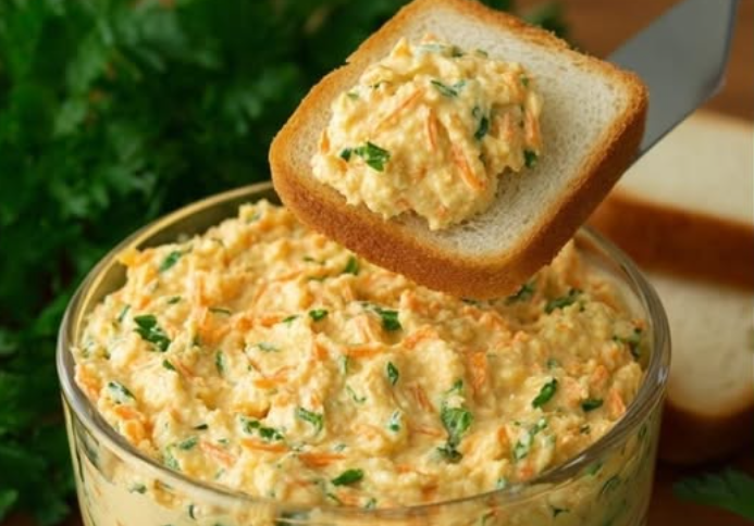 Această pastă cremoasă de morcovi cu brânză (sau pate/salată tartinabilă) este un deliciu simplu, sănătos și viral – perfectă pe pâine prăjită, ca aperitiv sau gustare. Morcovii rași dau dulceață naturală, brânza adaugă cremozitate, iar pătrunjelul și usturoiul o fac aromată și proaspătă. Este rapid de făcut și dispare instant de pe masă!