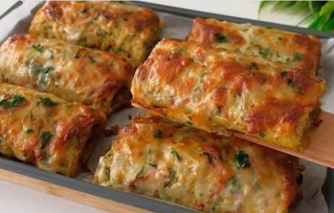 Presărați puțin cașcaval ras deasupra și puneți ruladele în cuptor pentru încă 15 minute, până se rumenesc frumos și se topesc aromele.
